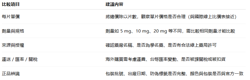 無論選哪個管道:確保來源合法、包裝完整、劑量與你需求相符、避免來路不明低價誘惑。